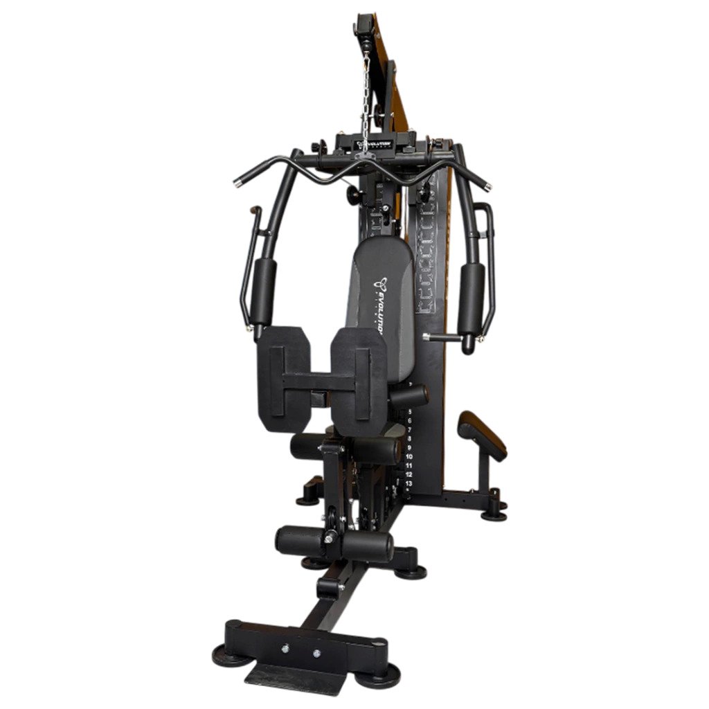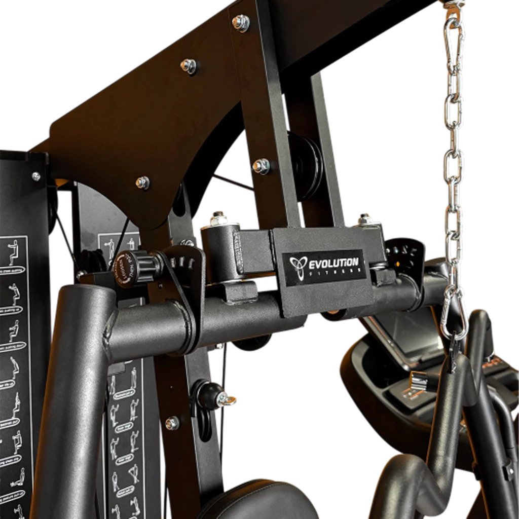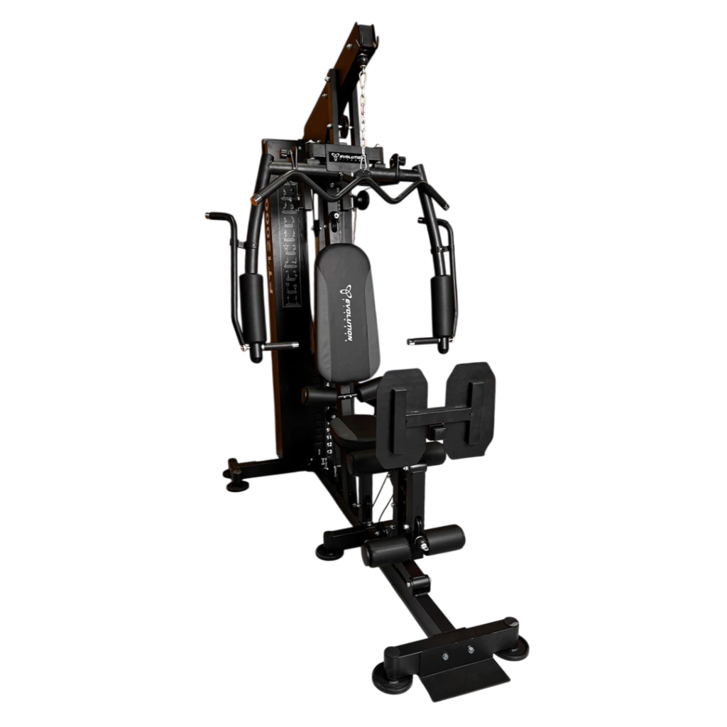 Equipada com torre de pesos de 72 kg, proporciona resistência adequada para exercícios de força e condicionamento. Seu sistema integrado inclui supino e estações para treinos de pernas, braços, costas e peito, garantindo um treinamento funcional, dinâmico e eficiente para usuários de diferentes níveis.